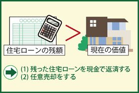 自宅を売却しても住宅ローンを完済することができませんので次のいずれかの方法をとる。
